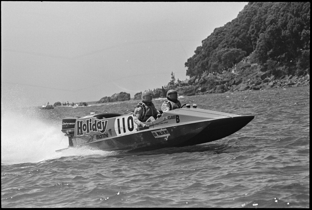 Date2 December 1975Reference Numberphoto gcc-37214DescriptionThe power boat Holiday Marine in the 100-minute-power boat race in Tauranga. Published 2 December 1975.FormatNegativePhysical Description35mm black-and-white negative (2/3)Photographer/CreatorBay of Plenty Times