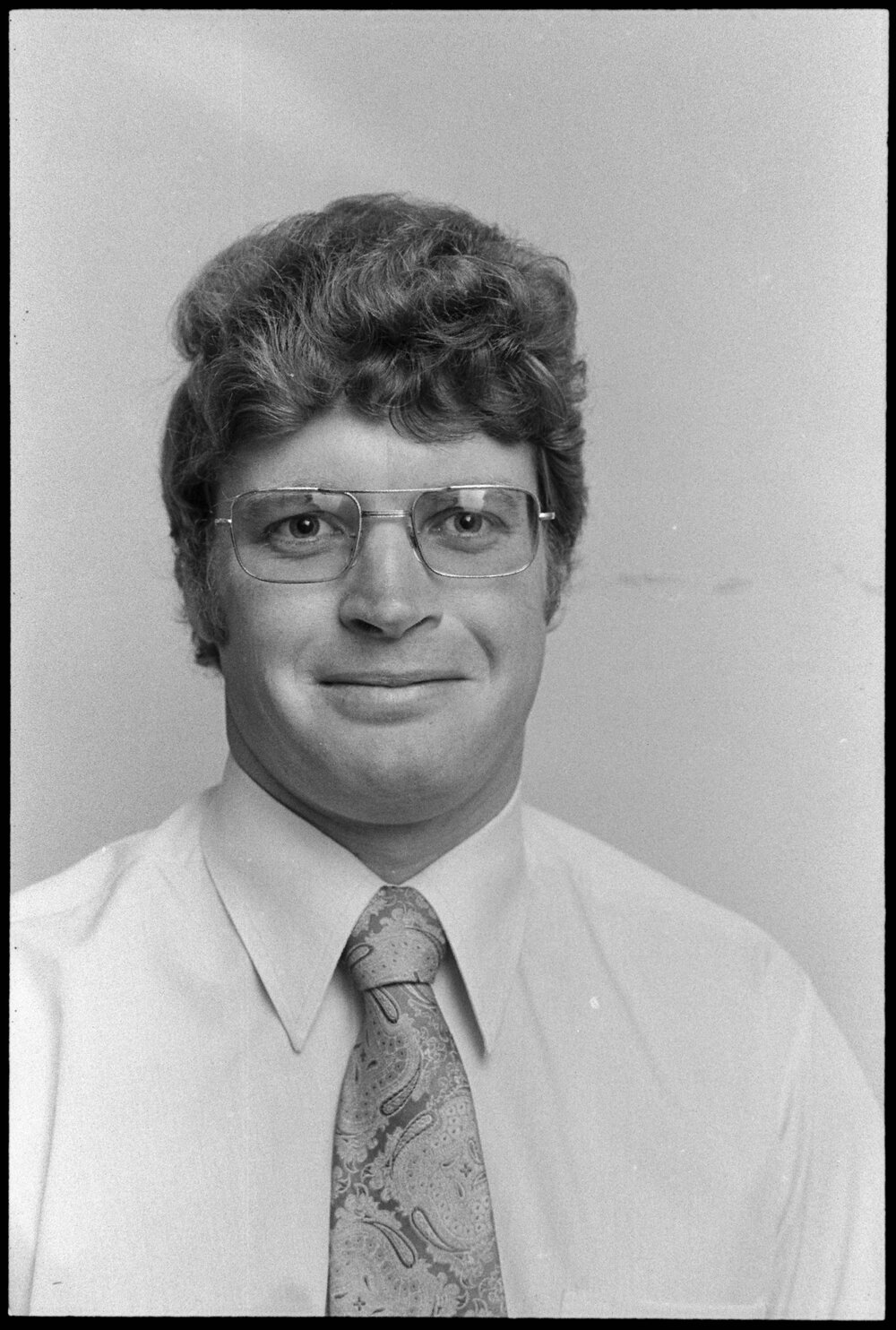 Date25 November 1975Reference Numberphoto gcc-37345DescriptionPortrait image of man with glasses and a collar and tie. Published 25 November 1975.FormatNegativePhysical Description35mm black-and-white negative (5/6)Photographer/CreatorBay of Plenty Times