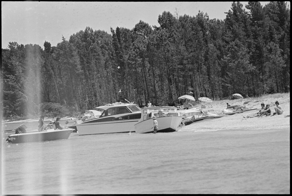 Date4 December 1975Reference Numberphoto gcc-37361DescriptionPower boat race at Matakana Island. Published 4 December 1975.FormatNegativePhysical Description35mm black-and-white negative (1/3)Photographer/CreatorBay of Plenty Times