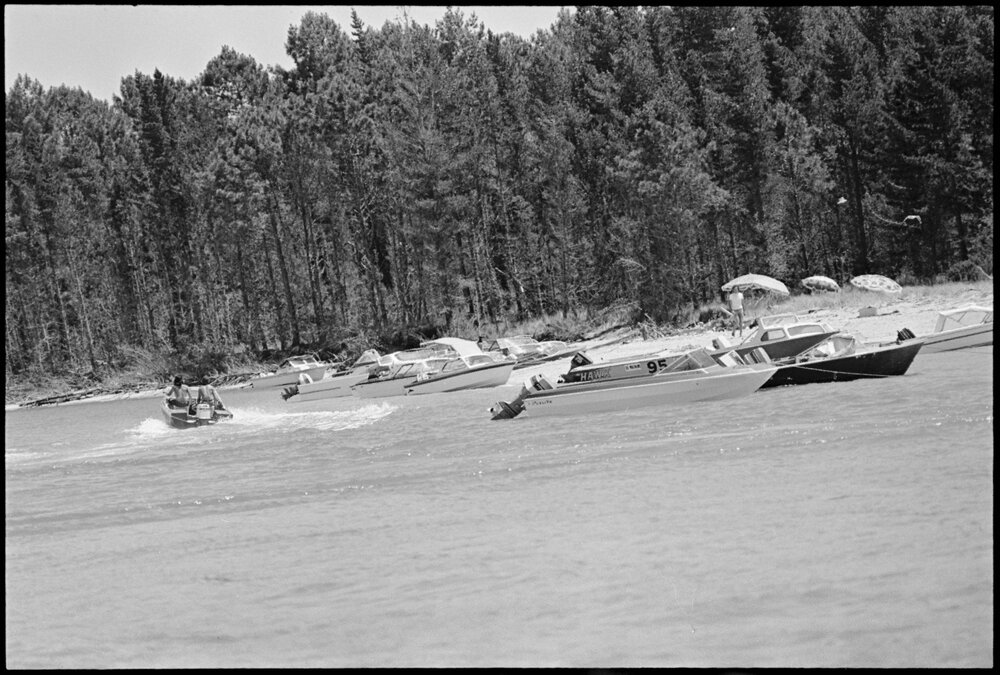 Date4 December 1975Reference Numberphoto gcc-37362DescriptionPower boat race at Matakana Island. Published 4 December 1975.FormatNegativePhysical Description35mm black-and-white negative (2/3)Photographer/CreatorBay of Plenty Times