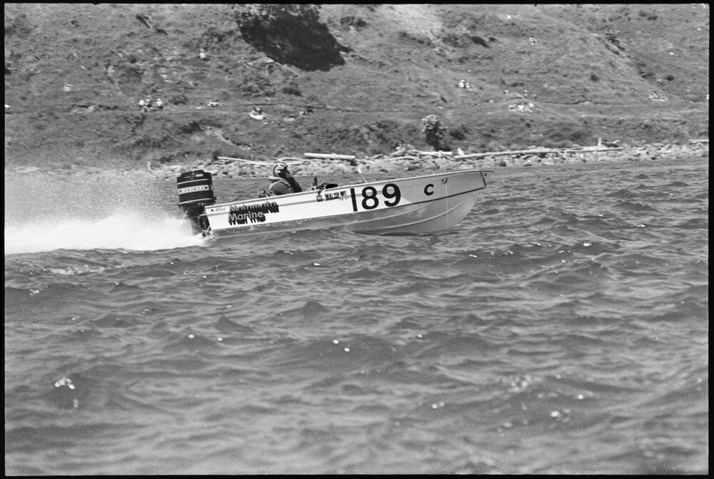 Date4 December 1975Reference Numberphoto gcc-37370DescriptionTauranga Power Boat Race Organisation's big event around Mount Maunganui with boat number 189. Published 4 December 1975.FormatNegativePhysical Description35mm black-and-white negative (1/3)Photographer/CreatorBay of Plenty Times