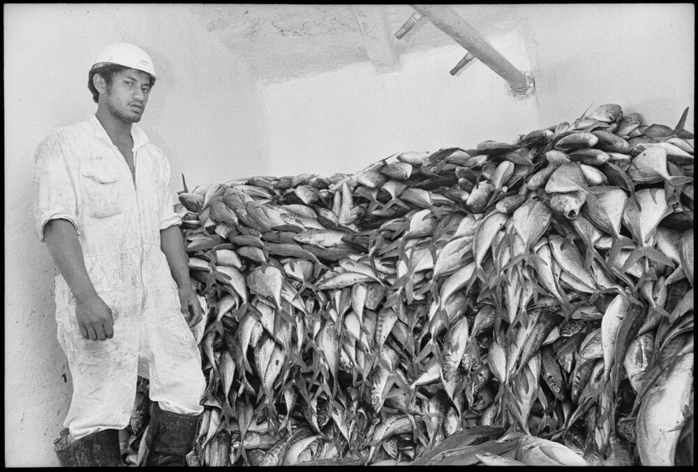 Date6 December 1975Reference Numberphoto gcc-37443DescriptionMr Billy Hoete of Sanfords unloading crew, in the hold of the F. V. Lindberg with a record catch of fish, including Trevally, Kahawai and Mackerell. Published 6 December 1975.FormatNegativePhysical Description35mm black-and-white negative (1/6)Photographer/CreatorBay of Plenty Times