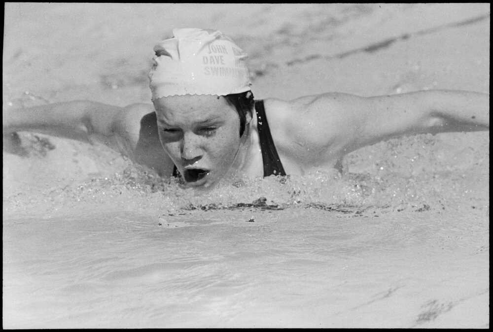 Date9 December 1975Reference Numberphoto gcc-37485DescriptionAnn Toomath of Wellington wins her 110 yards under-16 girls' butterfly heat at the North Island swimming championships at Greerton. Published 9 December 1975.FormatNegativePhysical Description35mm black-and-white negative (4/6)Photographer/CreatorBay of Plenty Times