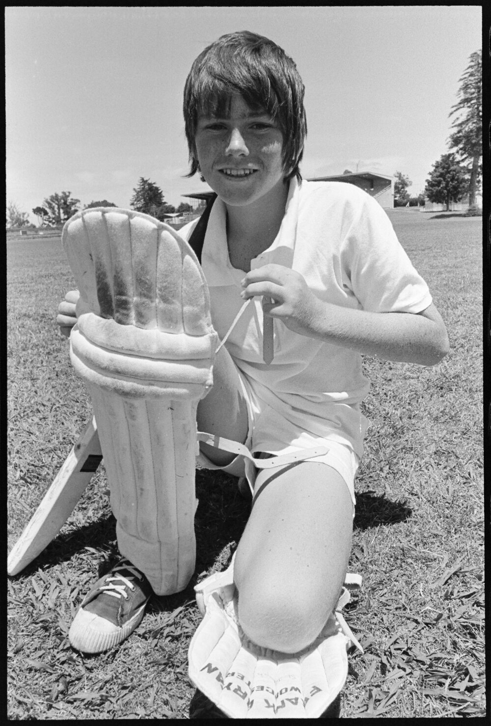 Date10 December 1975Reference Numberphoto gcc-37501DescriptionBrian Campbell, a 13-year-old from Waiuku playing for Franklin, in the Northern Provinces representative intermediate schoolboys tournament at Tauranga Domain. Published 10 December 1975.FormatNegativePhysical Description35mm black-and-white negative (2/6)Photographer/CreatorBay of Plenty Times