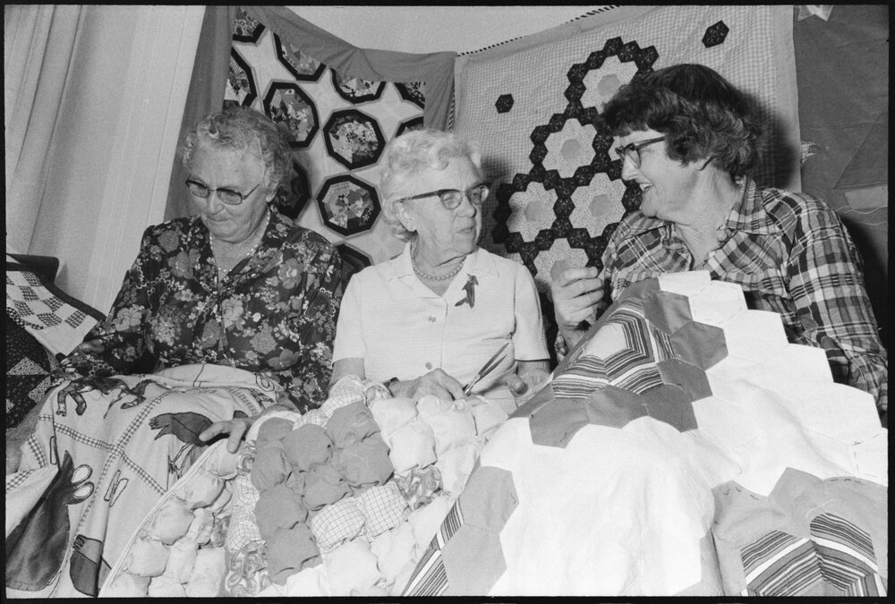 Date10 December 1975Reference Numberphoto gcc-37526DescriptionThree ladies sewing quilts. Published 10 December 1975.FormatNegativePhysical Description35mm black-and-white negative (4/6)Photographer/CreatorBay of Plenty Times