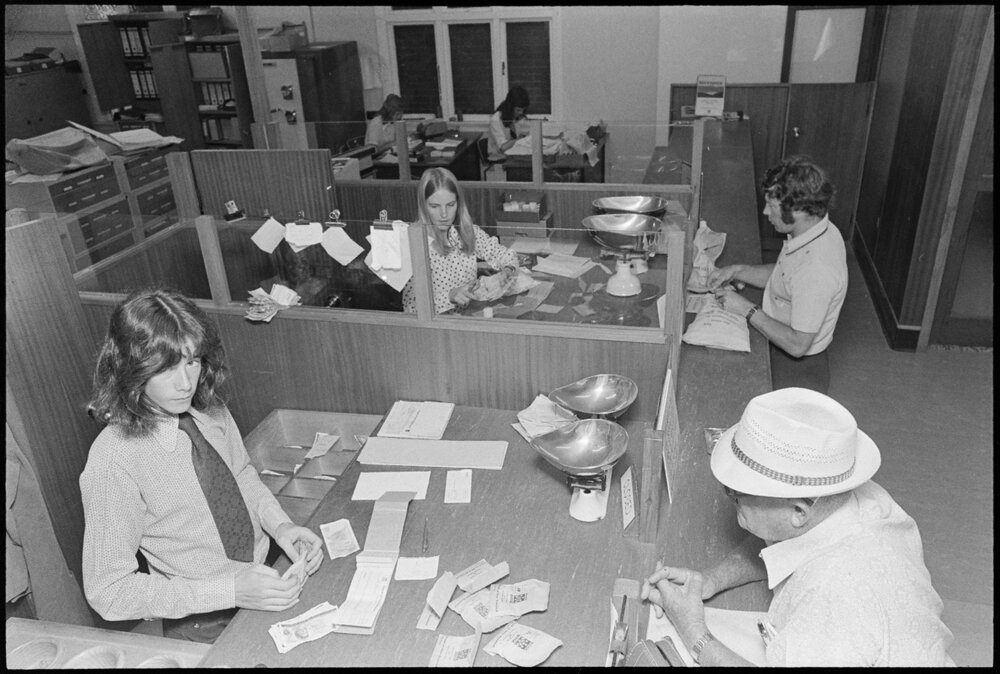 Date13 December 1975Reference Numberphoto gcc-37600DescriptionTellers at work in the Eleventh Avenue branch. Published 13 December 1975.FormatNegativePhysical Description35mm black-and-white negative (1/5)Photographer/CreatorBay of Plenty Times