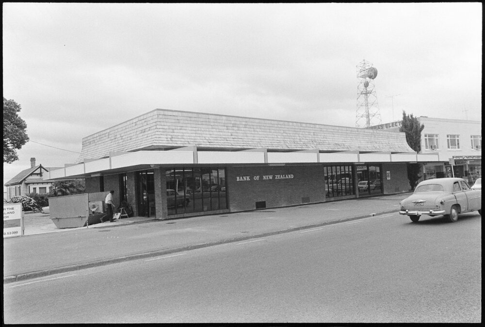 Date13 December 1975Reference Numberphoto gcc-37605DescriptionThe new Bank of New Zealand branch on the corner of Eleventh Avenue and Cameron Road. In 2025, this is "The Flooring Room". Published 13 December 1975.FormatNegativePhysical Description35mm black-and-white negative (1/3)Photographer/CreatorBay of Plenty Times