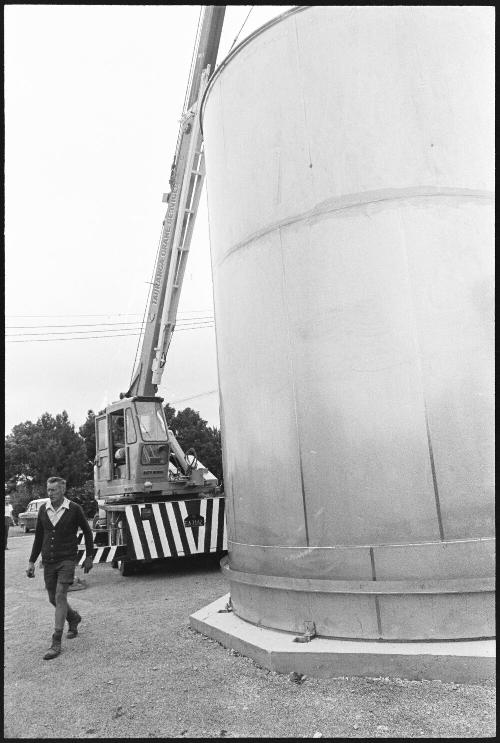Date16 December 1975Reference Numberphoto gcc-37704DescriptionInstallation of a $12,000 silo at Tauranga Fruit Processors Ltd, which will cater for the Bay of Plenty area after intensive planting, particularly of grapefruit and tangelos. Published 16 December 1975.FormatNegativePhysical Description35mm black-and-white negative (2/9)Photographer/CreatorBay of Plenty Times