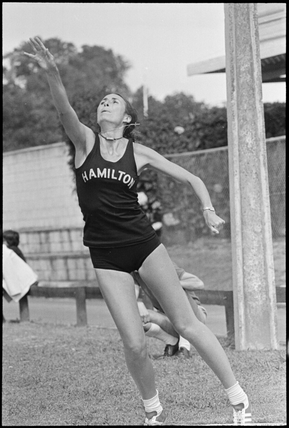 Date17 December 1975Reference Numberphoto gcc-37718DescriptionLyn Sinclair of Hamilton, competing in the shot put at the northern league athletics meeting at Tauranga. Published 17 December 1975.FormatNegativePhysical Description35mm black-and-white negative (1/12)Photographer/CreatorBay of Plenty Times