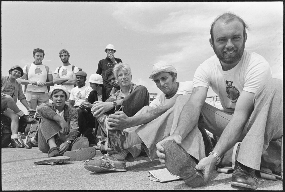 Date23 December 1975Reference Numberphoto gcc-37856DescriptionTen men from HMS Llandaff walked from Auckland to Tauranga to raise money for charity. Man on far right is Petty Officer Ron Heather. Published 23 December 1975.FormatNegativePhysical Description35mm black-and-white negative (1/9)Photographer/CreatorBay of Plenty Times