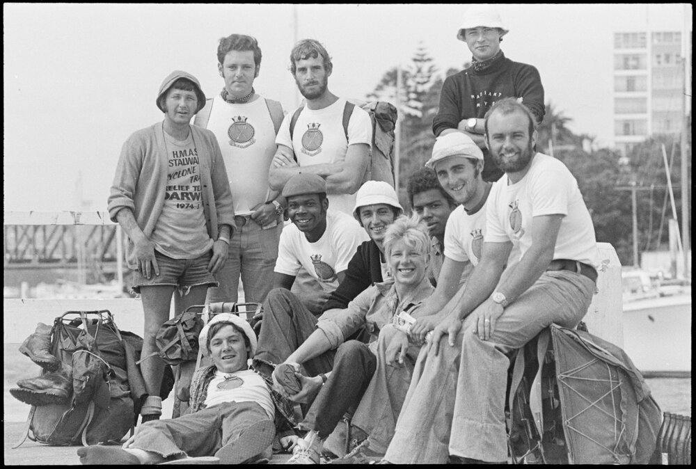 Date23 December 1975Reference Numberphoto gcc-37860DescriptionTen men from HMS Llandaff walked from Auckland to Tauranga to raise money for charity. Man on far right is Petty Officer Ron Heather. Published 23 December 1975.FormatNegativePhysical Description35mm black-and-white negative (5/9)Photographer/CreatorBay of Plenty Times