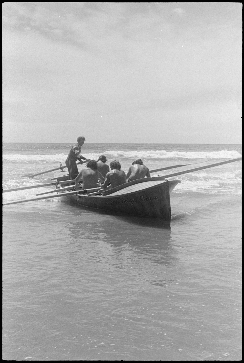 Date30 December 1975Reference Numberphoto gcc-37952DescriptionSurfboat race to Waihī Beach with the winning Mātaatua Canoe. Published 30 December 1975.FormatNegativePhysical Description35mm black-and-white negative (2/9)Photographer/CreatorBay of Plenty Times