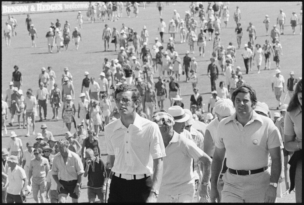 Date5 January 1976Reference Numberphoto gcc-38082DescriptionPart of the record large galleries which watched the 50th Jubilee NZPGA golf championships on the Tauranga course. Published 5 January 1976.FormatNegativePhysical Description35mm black-and-white negative (5/9)Photographer/CreatorBay of Plenty Times