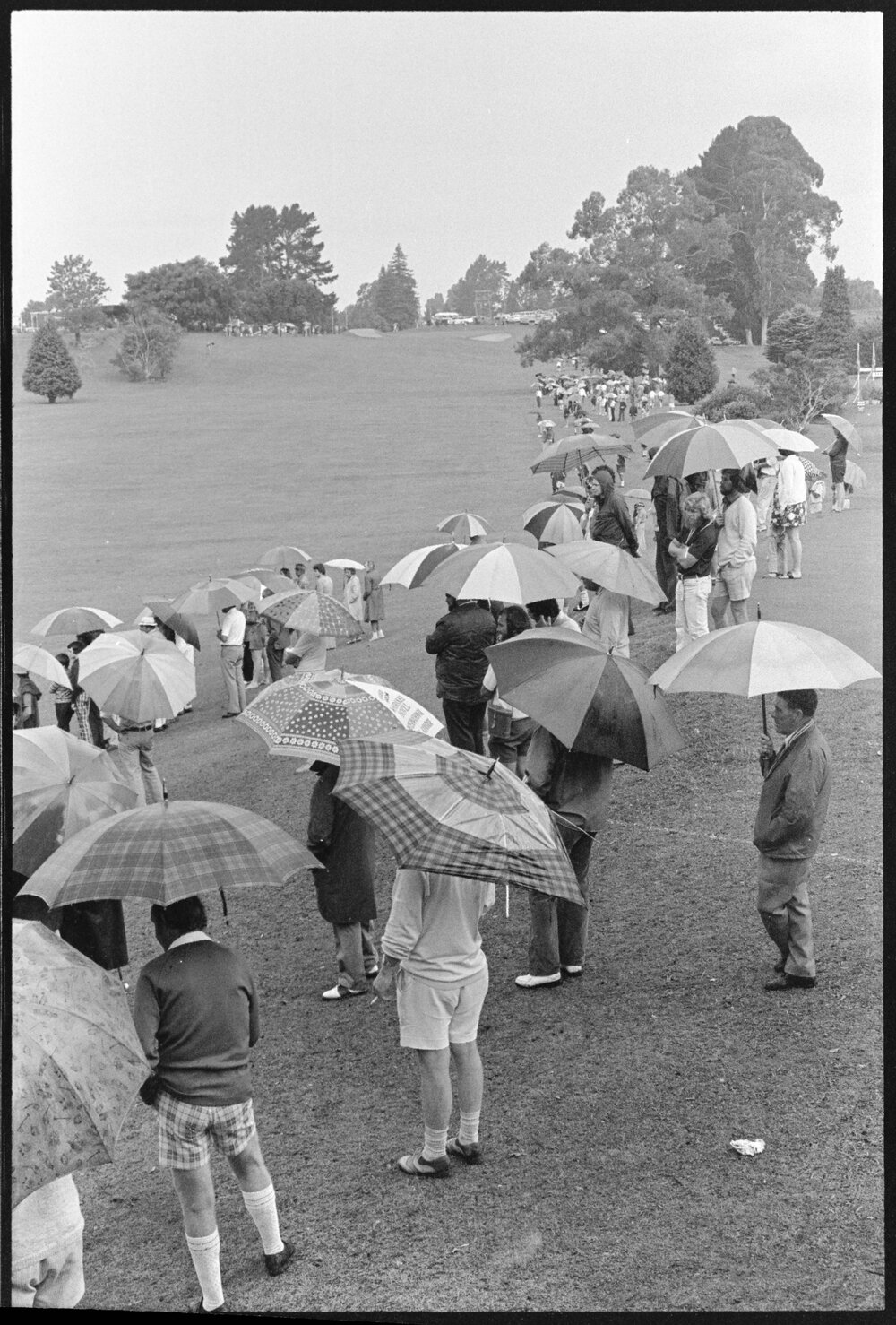 Date2 January 1976Reference Numberphoto gcc-38138DescriptionPart of the record large galleries which watched the 50th Jubilee NZPGA golf championships in the rain, on the Tauranga course. Published 2 January 1976.FormatNegativePhysical Description35mm black-and-white negative (1/3)Photographer/CreatorBay of Plenty Times