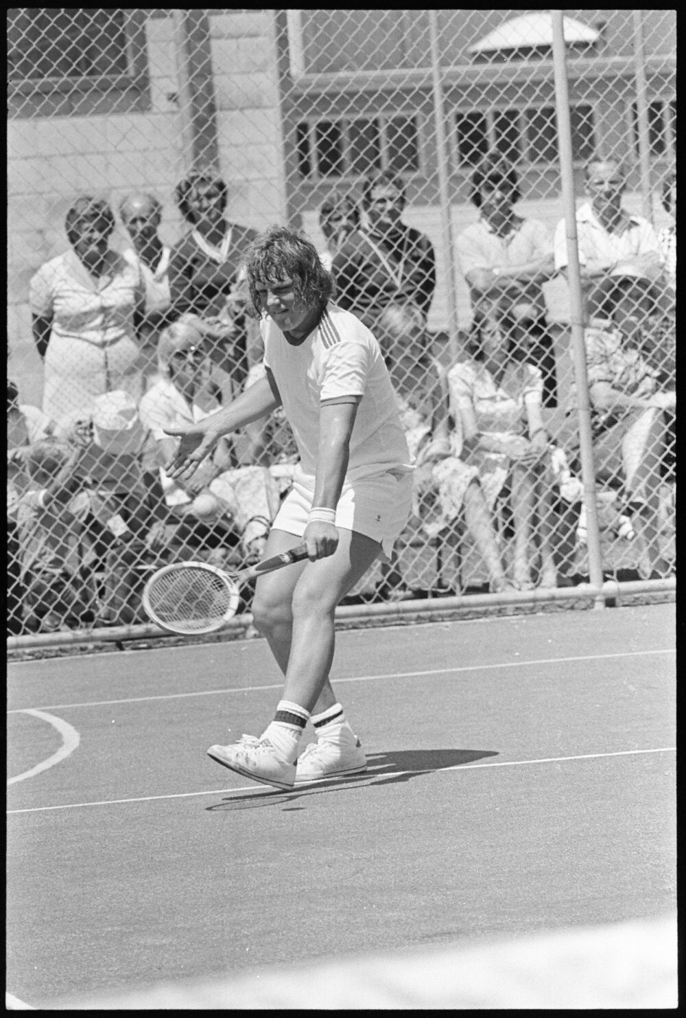 Date12 January 1976Reference Numberphoto gcc-38327DescriptionA young tennis player from Auckland, David Mustard, went down in the semi-final of the under 17 boys singles in the Bay of Plenty Open Age tennis tournament. Published 12 January 1976.FormatNegativePhysical Description35mm black-and-white negative (3/3)Photographer/CreatorBay of Plenty Times
