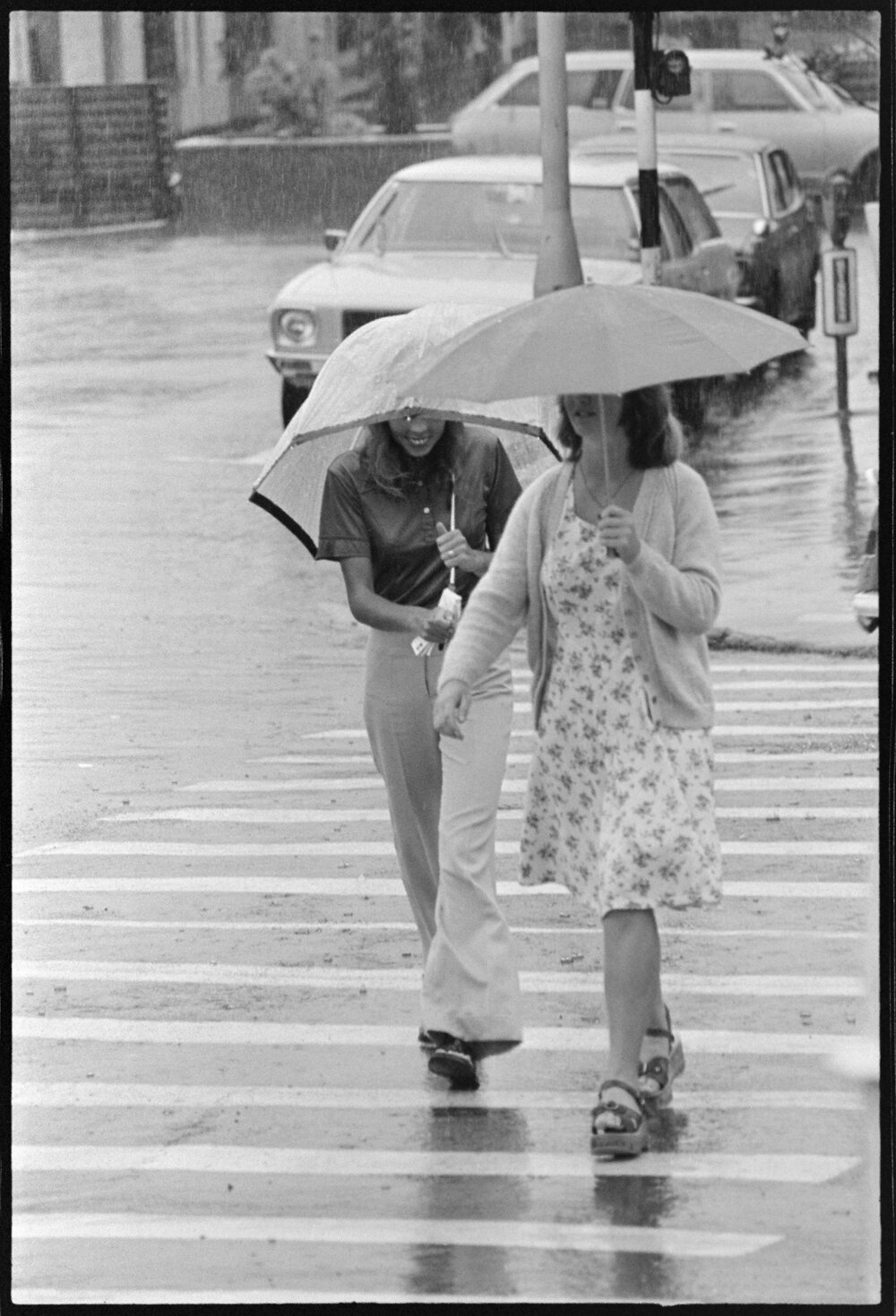 Date13 January 1976Reference Numberphoto gcc-38376DescriptionWith torrential rain all over the country, Tauranga shoppers did not escape, shown here with their umbrellas. Published 13 January 1976.FormatNegativePhysical Description35mm black-and-white negative (2/3)Photographer/CreatorBay of Plenty Times