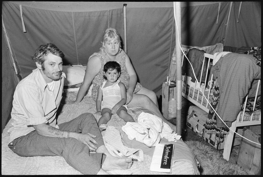 Date14 January 1976Reference Numberphoto gcc-38391DescriptionKathy Broadfoot, her husband and daughter Kim live in a tent in Waihī, and have extra challenges when it rains. Published 14 January 1976.FormatNegativePhysical Description35mm black-and-white negative (2/8)Photographer/CreatorBay of Plenty Times