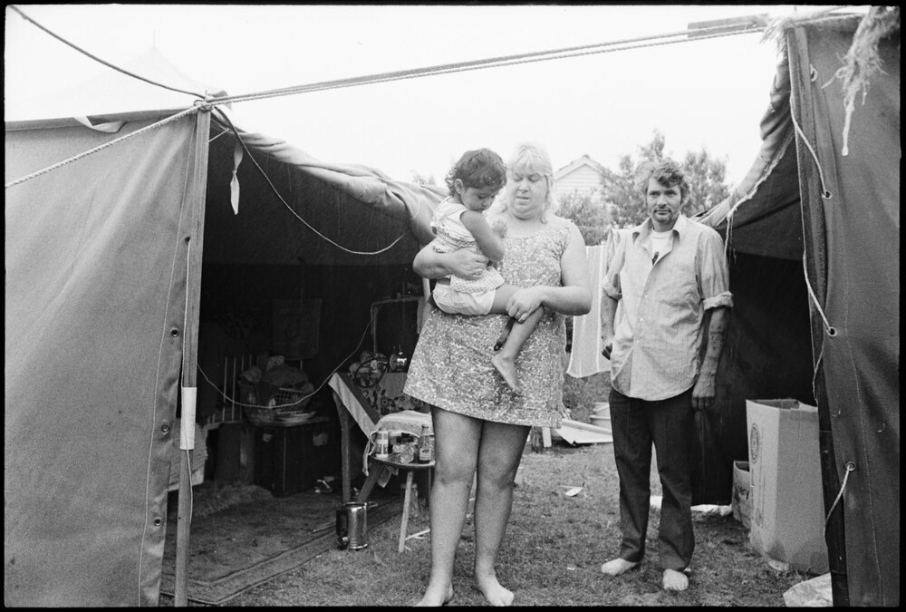 Date14 January 1976Reference Numberphoto gcc-38398DescriptionKathy Broadfoot, her husband and daughter Kim live in a tent in Waihī, and have extra challenges when it rains. Published 14 January 1976.FormatNegativePhysical Description35mm black-and-white negative (1/6)Photographer/CreatorBay of Plenty Times