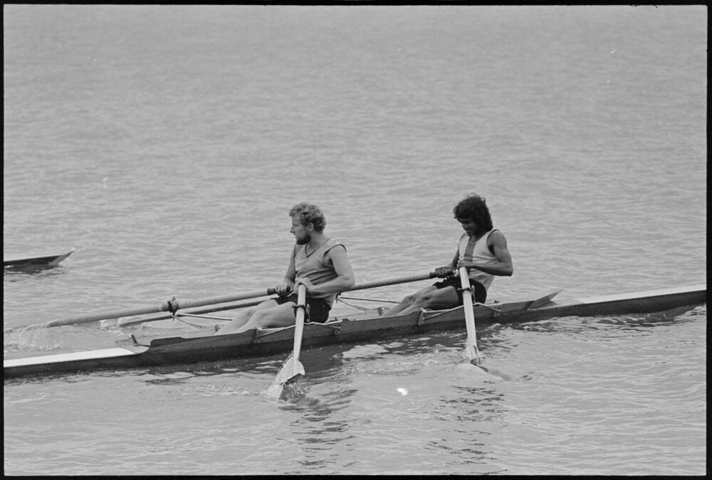 Date16 January 1976Reference Numberphoto gcc-38459DescriptionMembers of the Tauranga Rowing Club in training on Tauranga Harbour. Pictured in the double scull are Howard Turner (front) and Bas Rajraatnan. Published 16 January 1976.FormatNegativePhysical Description35mm black-and-white negative (6/7)Photographer/CreatorBay of Plenty Times