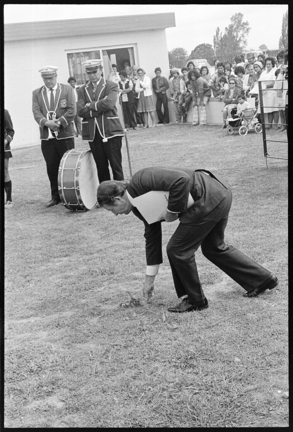 Date31 January 1976Reference Numberphoto gcc-38871DescriptionA gathering at the Waikari Marae, Matapihi to open the new dining hall, Kahumoeangi, was attended by Leader of the Opposition, Mr Rowling, who is seen accompanied by the Tauranga County Chairman, Mr A. G. Spratt, Sir Charles Bennett, Mr Reweti, Mr A. Jacob, Reverend Raumati and Mr L.K. O'Hara. Published 31 January 1976.FormatNegativePhysical Description35mm black-and-white negative (2/15)Photographer/CreatorBay of Plenty Times