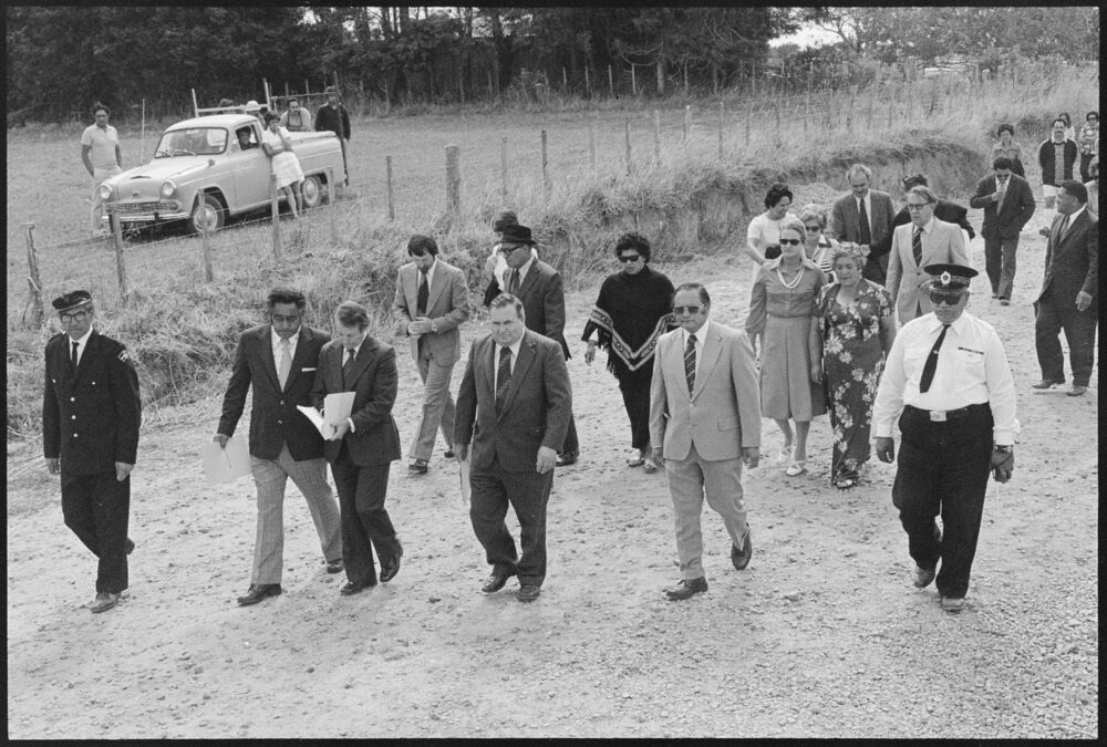 Date31 January 1976Reference Numberphoto gcc-38876DescriptionA gathering at the Waikari Marae, Matapihi to open the new dining hall, Kahumoeangi, was attended by Leader of the Opposition, Mr Rowling, who is seen accompanied by the Tauranga County Chairman, Mr A. G. Spratt, Sir Charles Bennett, Mr Reweti, Mr A. Jacob, Reverend Raumati and Mr L.K. O'Hara. Published 31 January 1976.FormatNegativePhysical Description35mm black-and-white negative (7/15)Photographer/CreatorBay of Plenty Times