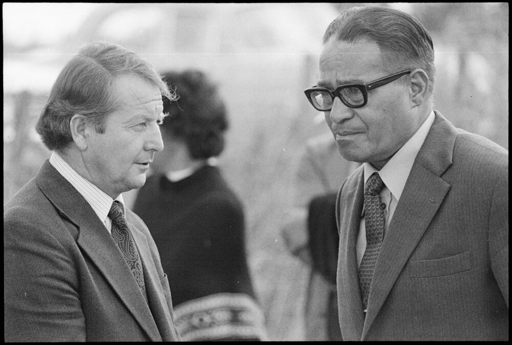 Date31 January 1976Reference Numberphoto gcc-38877DescriptionA gathering at the Waikari Marae, Matapihi to open the new dining hall, Kahumoeangi, was attended by Leader of the Opposition, Mr Rowling, who is seen accompanied by the Tauranga County Chairman, Mr A. G. Spratt, Sir Charles Bennett, Mr Reweti, Mr A. Jacob, Reverend Raumati and Mr L.K. O'Hara. Published 31 January 1976.FormatNegativePhysical Description35mm black-and-white negative (8/15)Photographer/CreatorBay of Plenty Times