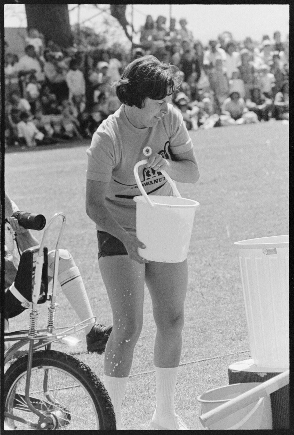Date2 February 1976Reference Numberphoto gcc-38898DescriptionCompetitors balance a bucket of water as they cycle on their 'Choppers' at the Tauranga Top Town event at Tauranga Domain. Published 2 February 1976.FormatNegativePhysical Description35mm black-and-white negative (2/6)Photographer/CreatorBay of Plenty Times