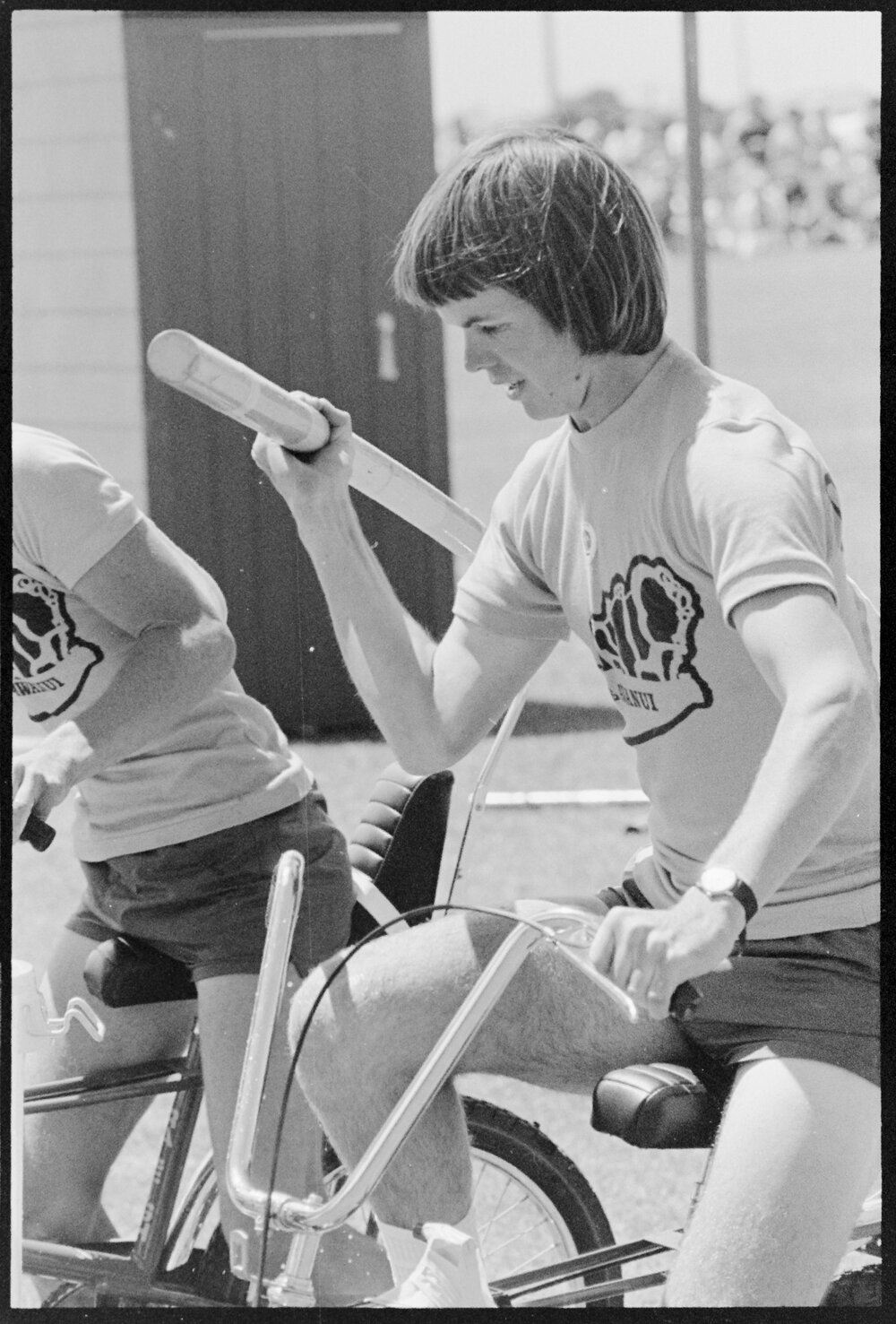 Date2 February 1976Reference Numberphoto gcc-38901DescriptionCompetitors balance a bucket of water as they cycle on their 'Choppers' at the Tauranga Top Town event at Tauranga Domain. Published 2 February 1976.FormatNegativePhysical Description35mm black-and-white negative (5/6)Photographer/CreatorBay of Plenty Times