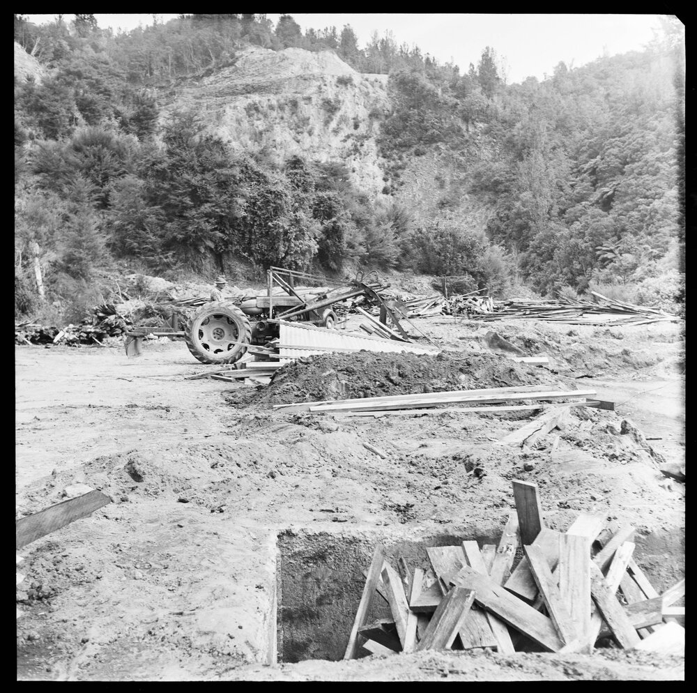 Date25 October 1972Reference NumberPhoto gca-21262DescriptionAbandoned quarry brought back to life at the base of the Pāpāmoa hills with Mr J. W. Downman manufacter barbeque coal there and distributing throughout New Zealand. Published 25 October 1972.FormatNegativePhysical Description120-format cellulose triacetate black and white negative (1/2)Photographer/CreatorBay of Plenty Times