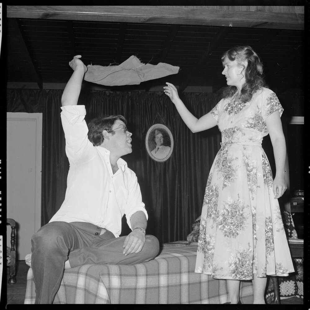 Date26 October 1972Reference NumberPhoto gca-21265DescriptionPaul Minifie (Tom) and Catherine Wilkin (Laura) in Gateway Players' production "the Glass Menagerie" . Published 26 October 1972.FormatNegativePhysical Description120-format cellulose triacetate black and white negative (1/4)Photographer/CreatorBay of Plenty Times