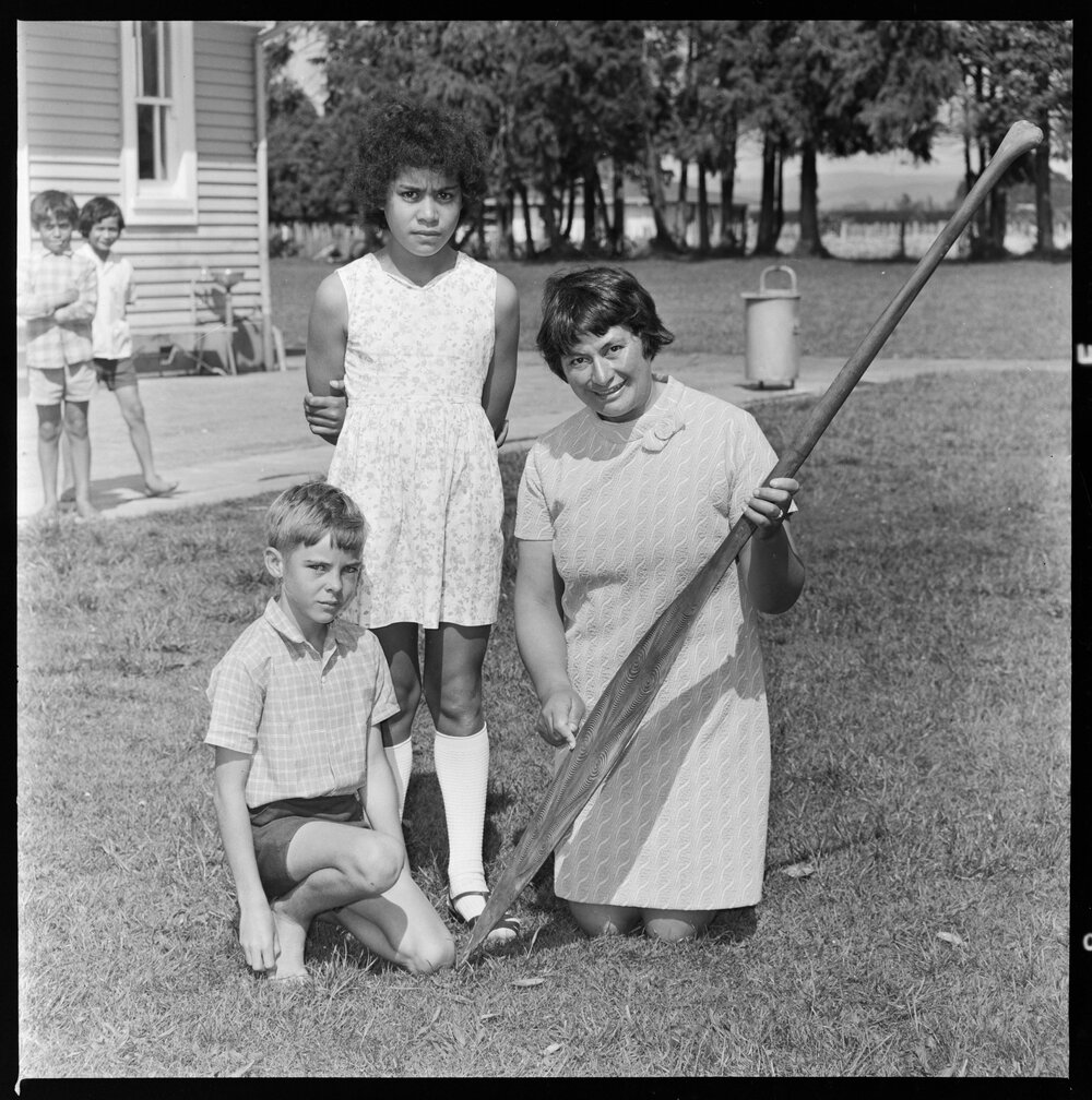 Date6 November 1972Reference NumberPhoto gca-21346DescriptionA paddle was fundraised for by Matapihi School with the help of students Maha Ellis and Michael Pratt, the hoe (paddle) is held by Mrs A. Ngatai. Published 6 November 1972.FormatNegativePhysical Description120-format cellulose triacetate black and white negative (1/2)Photographer/CreatorBay of Plenty Times