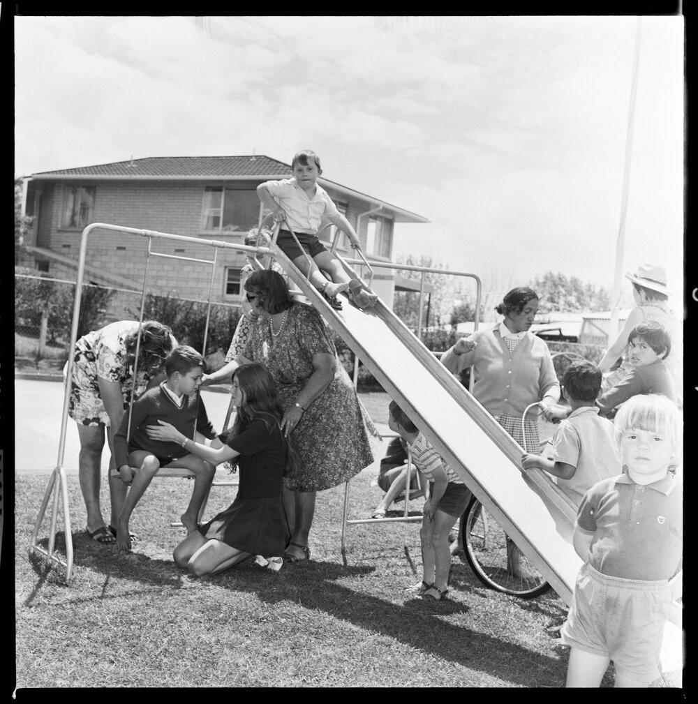 Date10 November 1972Reference NumberPhoto gca-21373DescriptionSlide and roundabout installed at the Kākā Street Intellectually Handicapped School through fund-raising activities by the Tauranga Leo Club. Not published 10 November 1972.FormatNegativePhysical Description120-format cellulose triacetate black and white negative (2/2)Photographer/CreatorBay of Plenty Times