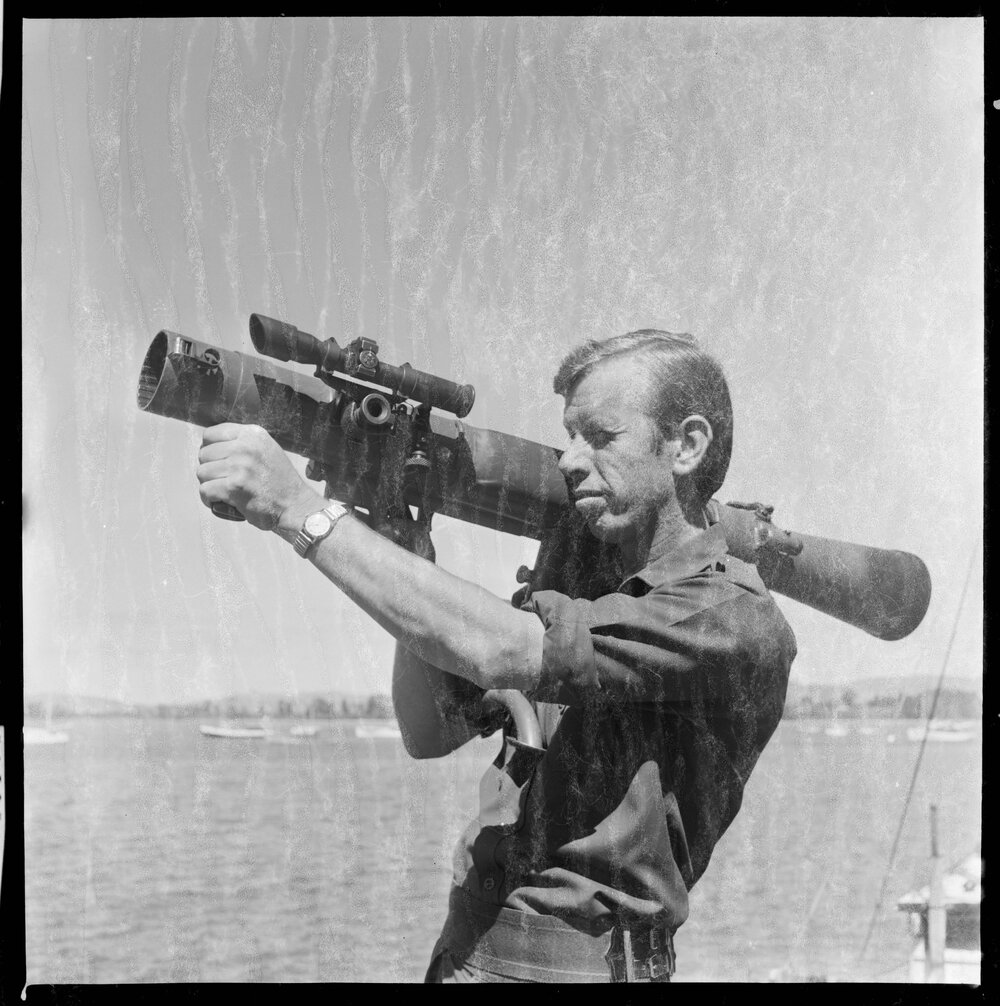Date15 February 1973Reference NumberPhoto gca-21515DescriptionHigh powered weapon in show display, seen here being demonstrated by Sergeant P. Croucher of 6RNZIR on how to operate the anti-tank gun. Published 15 February 1973.FormatNegativePhysical Description120-format cellulose triacetate black and white negative (1/2)Photographer/CreatorBay of Plenty Times