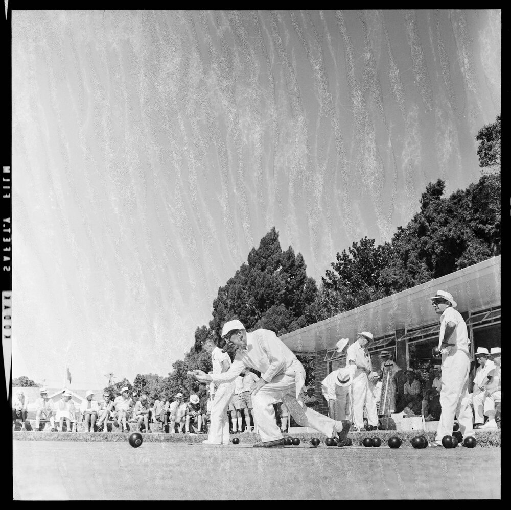 Date17 February 1973Reference NumberPhoto gca-21532DescriptionMr A. White of Te Awamutu sends one down for the kitty in the Tauranga combined clubs' bowling tournament yesterday. Published 1973.FormatNegativePhysical Description120-format cellulose triacetate black and white negative (1/2)Photographer/CreatorBay of Plenty Times