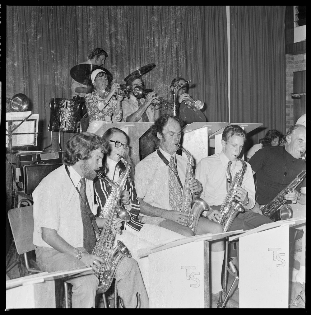 Date2 March 1973Reference NumberPhoto gca-21625DescriptionThe jazzband, making their first appearance in Tauranga is made up members of the Tauranga Jazz Festival Society and the Tauranga Swing Musicians Club. Published March 1973.FormatNegativePhysical Description120-format cellulose triacetate black and white negative (1/1)Photographer/CreatorBay of Plenty Times