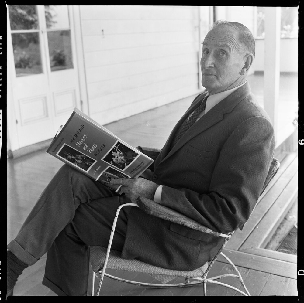 Date3 May 1973Reference NumberPhoto gca-21817DescriptionMr E. T. Jordan with his book he received to mark his retirement from Katikati District High and Primary School. Published 3 May 1973.FormatNegativePhysical Description120-format cellulose triacetate black and white negative (1/2)Photographer/CreatorBay of Plenty Times