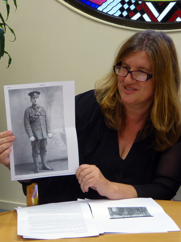 In 2015 Julie Richards came in to the Tauranga City Libraries to remember her great grandfather Reginald Secker, as part of the Threads of Memory project. Photographer Lee Switzer