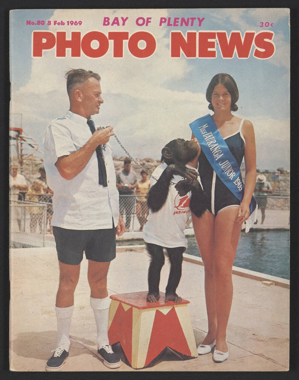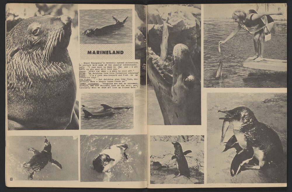 Bay of Plenty Photo News ran many articles with photographs of events, visitors and animals at Marineland. The above front cover was from No. 80 published on 7 February 1969, and the one below from No. 92, 7 February 1970.