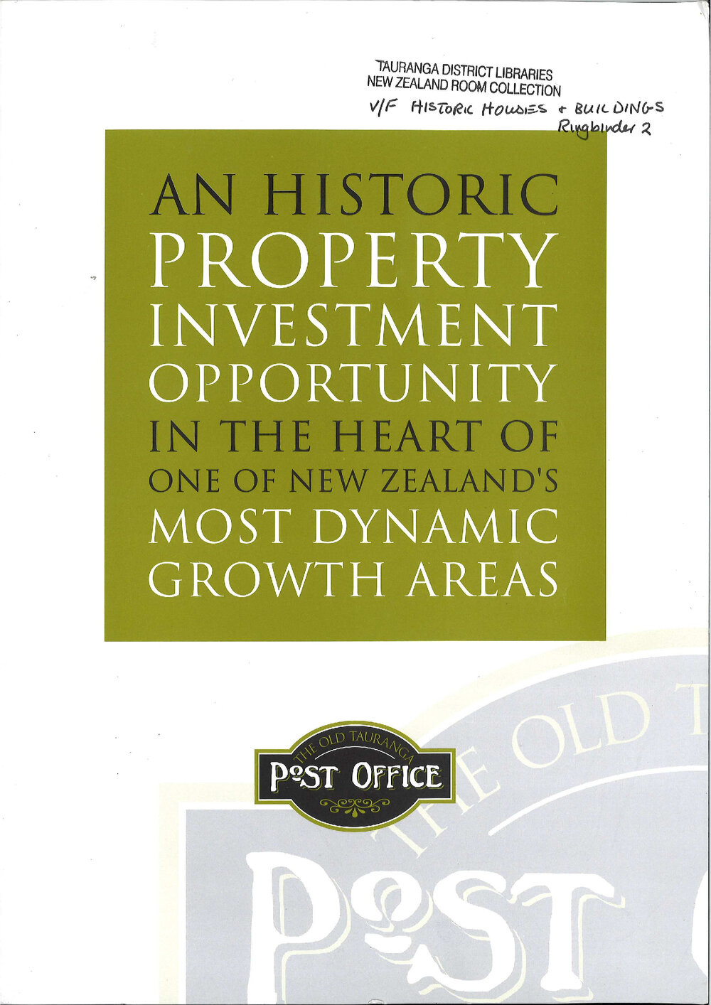 Tauranga District Council, Brochure inviting expressions of interest for the Old Post Office, 1988 (c. April 1988). Pae Korokī, accessed 18/03/2026, https://paekoroki.tauranga.govt.nz/nodes/view/118613