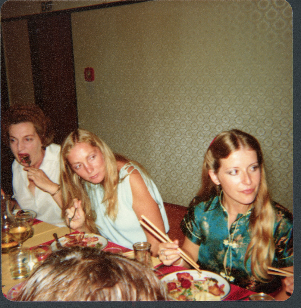 Left to right, Charlotte (in profile, surname not given), Pat Scott (nee Phelan), Miss Morgan, Moray Guise (in yellow), Fran: