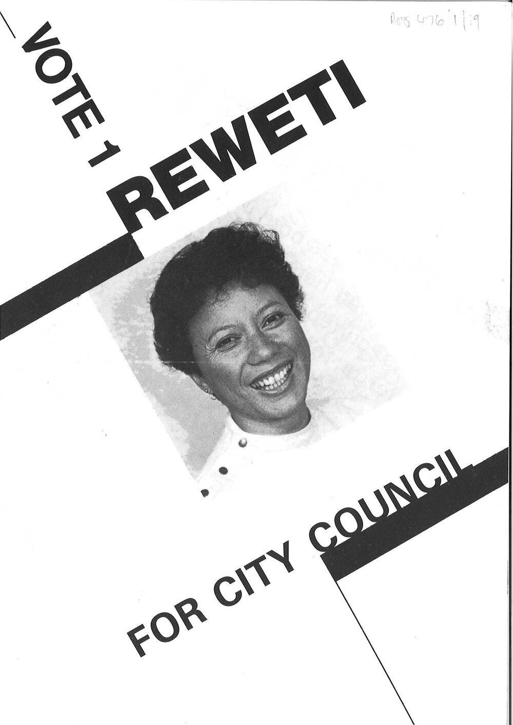 Reweti, Marama, Candidate flier for Marama Reweti (c. 1990s). Pae Korokī, accessed 18/03/2026, https://paekoroki.tauranga.govt.nz/nodes/view/119695