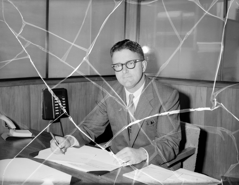 Bank of New Zealand Birkenhead branch manager Mr R.J. Silvester, 1961