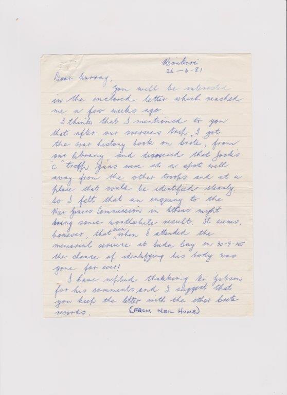1981 06 26 Neil Hume to Murray Hume re no burial location possible