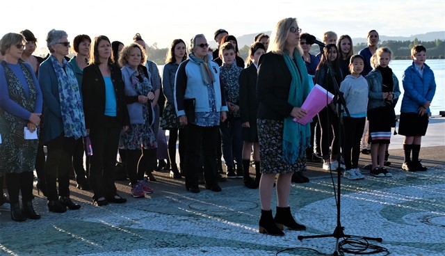 Date2017DescriptionTauranga Arts Festival was officially opened by a dawn chorus, Takiri Ko Te Ata, on the morning on 18 October 2017. A waiata was sung to the sun rising across the sea in celebration of our people, place and our artists. Local composer Teraania OrmsbyTeki and celebrated performer Ria Hall were commissioned to create a special waiata to be learned by school and adult choirs. Tākiri Ko Te Ata is a celebration of the power of music to bring people together. This photograph by Lee Switzer is of Tauranga Arts Festival Trust chairwoman Kathryn Lellman at the microphone. Photographer/CreatorSwitzer, Lee
