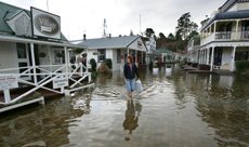 PICTURE: JOHN BORREN: Village resident Lyn Sinclair checking the flooding.