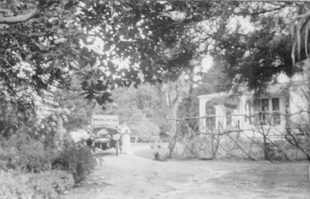 Date1910sReference NumberPhoto 03-436DescriptionMaungawhare, Ōtūmoetai, c 1910s, showing rustic trellis and car.FormatPrintPhysical Descriptionblack and white print
