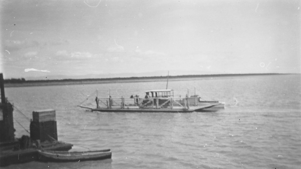 Date1925Reference NumberPhoto 03-529DescriptionBarge used for work on the construction of the Wairoa River railway bridge, 1925. From A. C. Bellamy, Paeroa-Waihī-Tauranga Railway report, 1978, p6: "The Wairoa River bridge consisting of thirteen 60 foot and two 30 foot spans on concrete piers supported on reinforced concrete piles was commenced in June 1925 and finished by the November. The spans which were fabricated at Mount Maunganui were loaded on special skidways and floated into position by barges using the rise and fall of the tide to load and place the girders." Placing girders by this method took only 12 days. Information in V/F Railways. FormatPrintPhysical Descriptionblack and white print