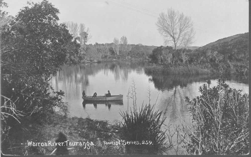 Datec. 1910Reference NumberPhoto 99-118DescriptionCaption: Wairoa River Tauranga Tourist series 259Reverse:Real Photo Post Card Frank Duncan &Co. Auckland Wairoa River Tauranga c. c1910FormatPrintPhysical Descriptionblack and white print