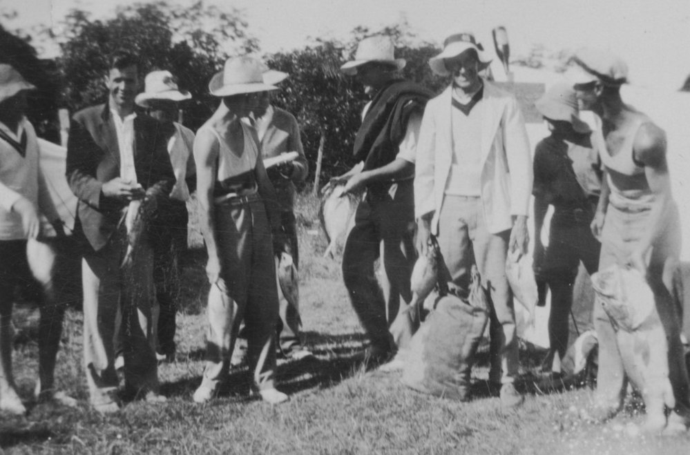 DateDecember 1930Reference NumberPhoto 02-219DescriptionSuccessful fishermen, Mount Maunganui. In pencil on back: "The day's catch, The Mount, Xmas 1930. "FormatPrintPhysical Descriptionblack and white print