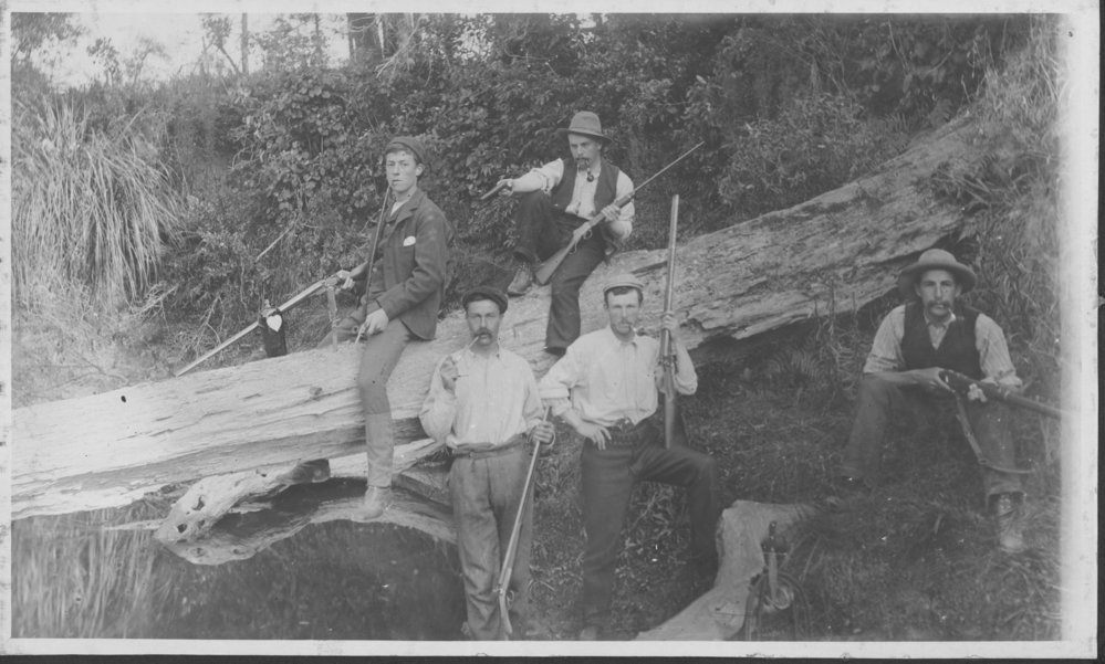 Reference NumberPhoto 02-409DescriptionImage from John Mowlem's album. Shooting party in bushFormatPrintPhysical Descriptionblack and white print